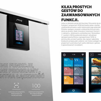 Intuicyjna nawigacja – 7-calowy ekran dotykowy z kolorowymi ikonami prowadzi użytkownika krok po kroku. Szybkie programowanie ulubionych przepisów lub wybór gotowych programów za pomocą kilku gestów – jedno dotknięcie i gotowe!